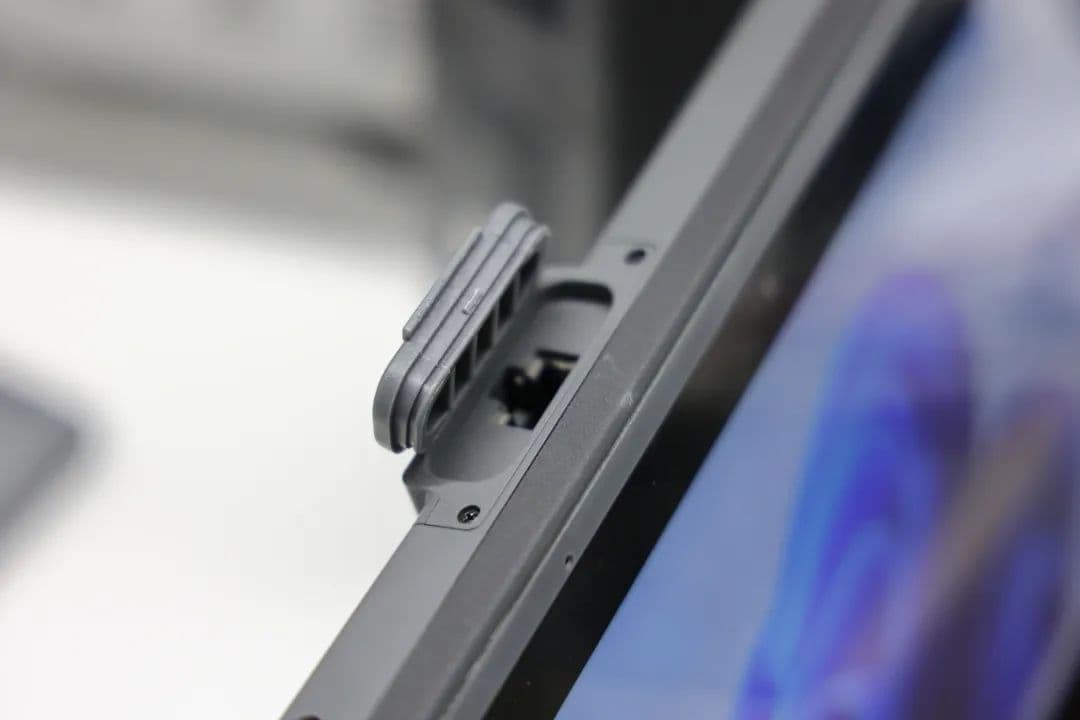 在接口和模块拓展方面,M10A有着大满贯的接口配置,能够满足几乎所有用户的使用需求。它的两侧标准配备了一个USB 3.2接口、一个全功能Type-C接口、一个HDMI 2.1a Mini接口(支持8K 60Hz或4K 120Hz视频传输)、一个3.5mm音频接口和一个SIM读卡器卡槽(外置可热插拔)以及一个DC充电口。