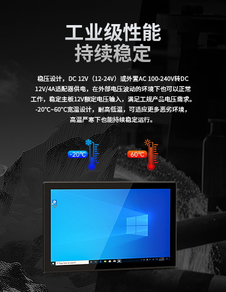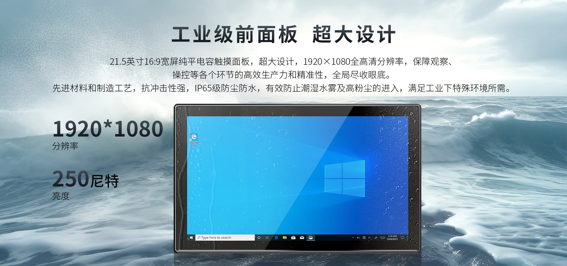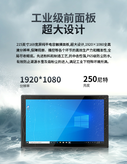 21.5英寸纯平电容触摸面板,抗冲击性强,IP65级防尘防水