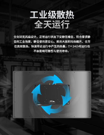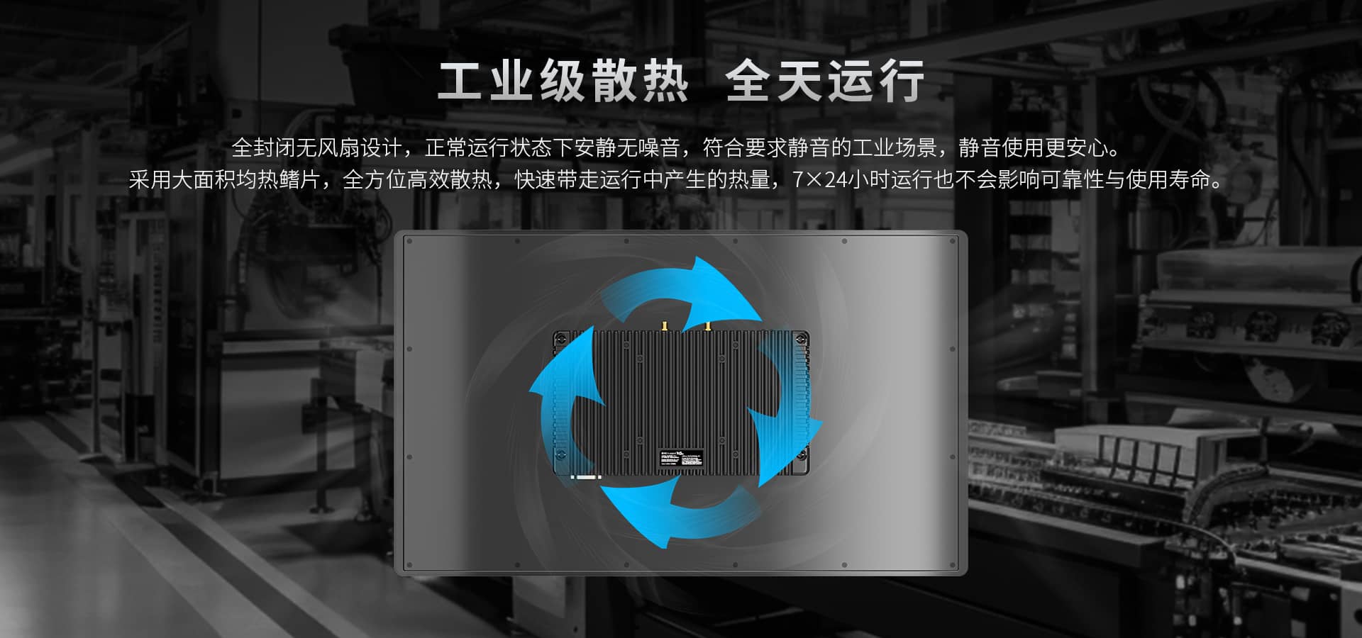 全封闭无风扇设计,采用大面积均热鳍片,7×24小时不间断运行