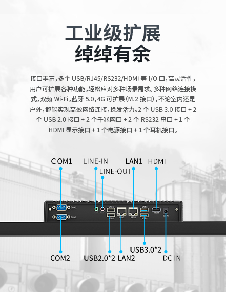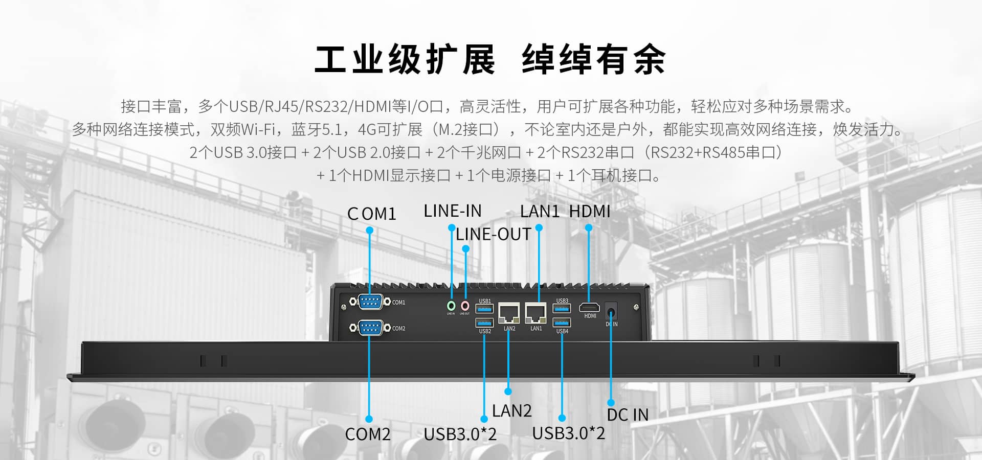接口丰富,多个USB/LAN/DB9/HDMI等I/O口,轻松应对多种场景需求
