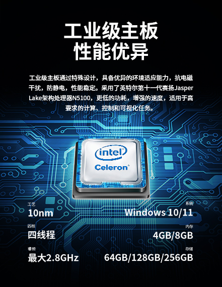 采用英特尔赛扬处理器N5100,搭载Windows 10/11操作系统