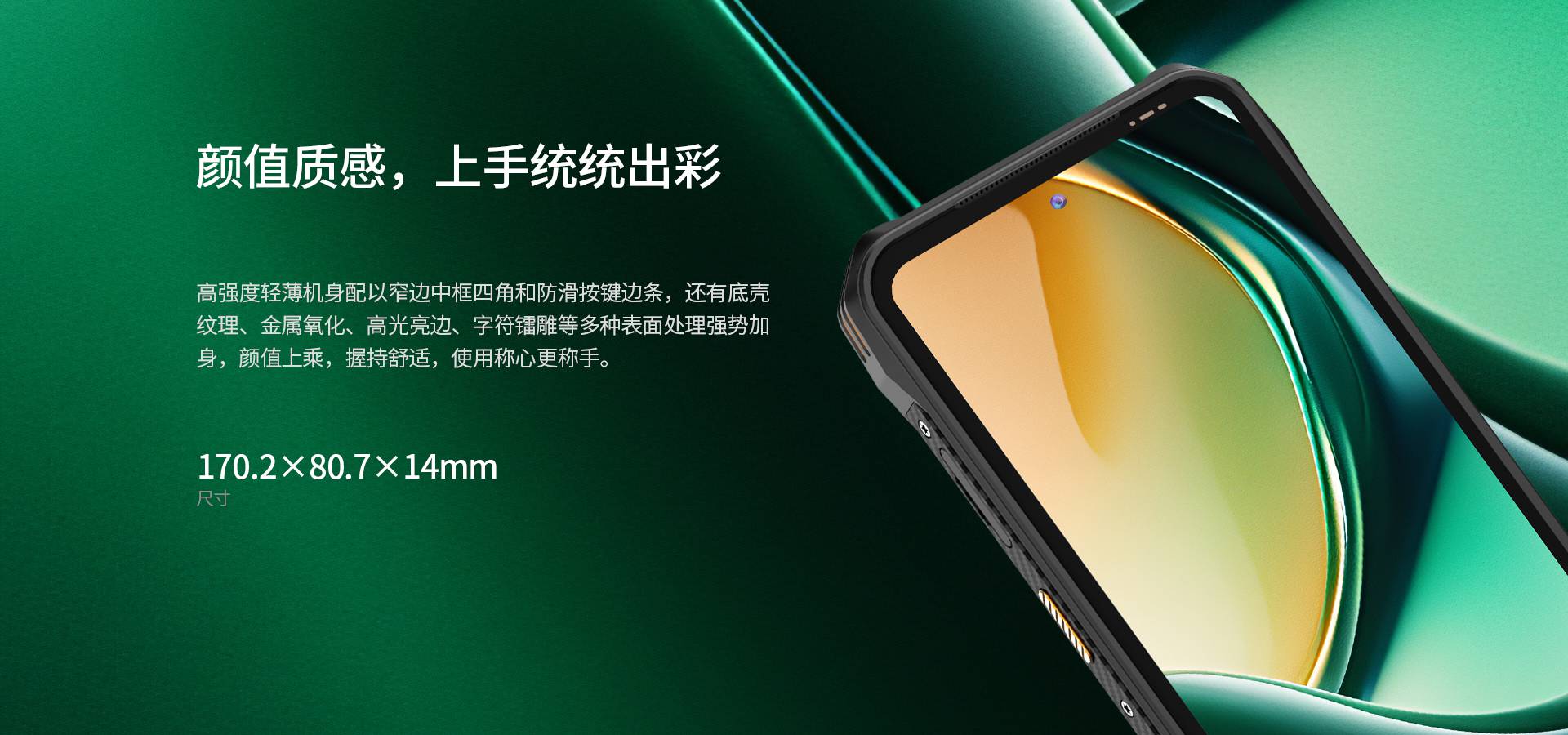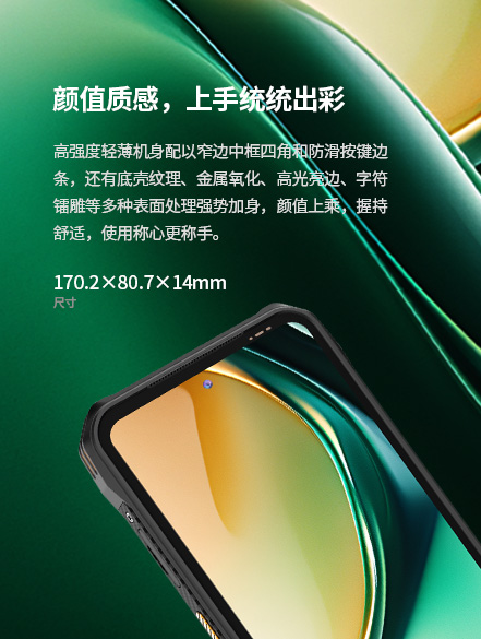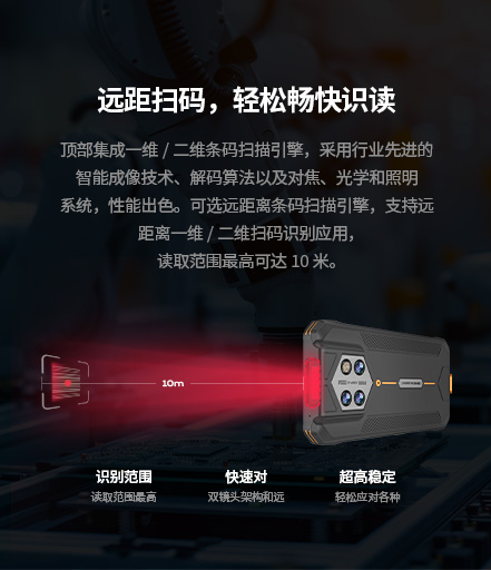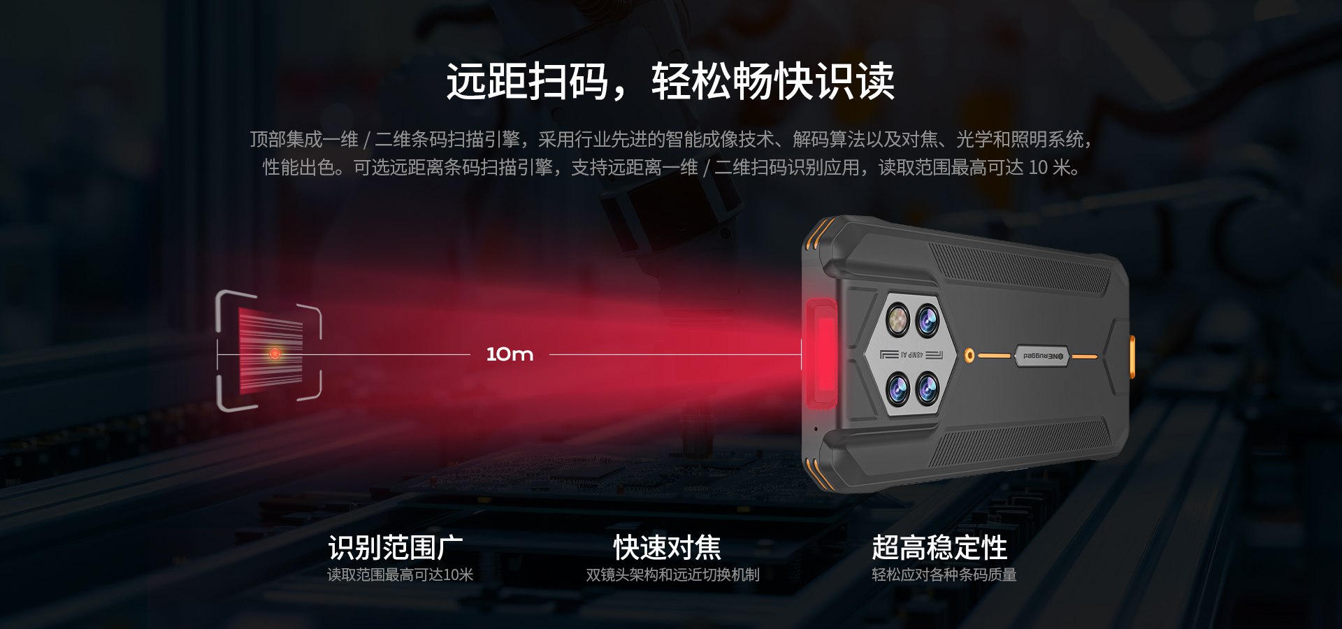 H68T搭载Helio G99平台,最新Android 14系统强力驱动; 6.56英寸新incell旗舰屏,支持多点触控、湿手及手套触控; 顶部集成一维/二维条码扫描引擎,读取范围最高可达10米; 前置3200万像素,后置4800万像素,主摄搭载三星旗舰传感器; 5800mAh大电池, 自研电池管理系统, 还可为其它移动设备供电; 高品质大音量扬声器,采用空间感知算法,户外依旧铿锵有力; IP68 防护等级,深水浸泡无压力,跌落防护高度达到1.5m 。