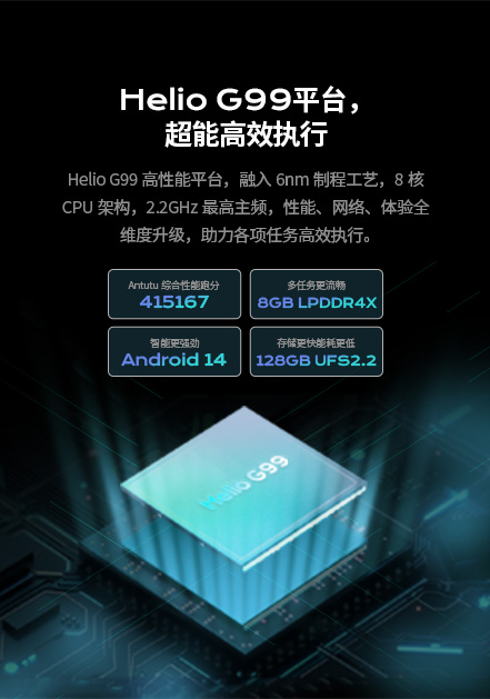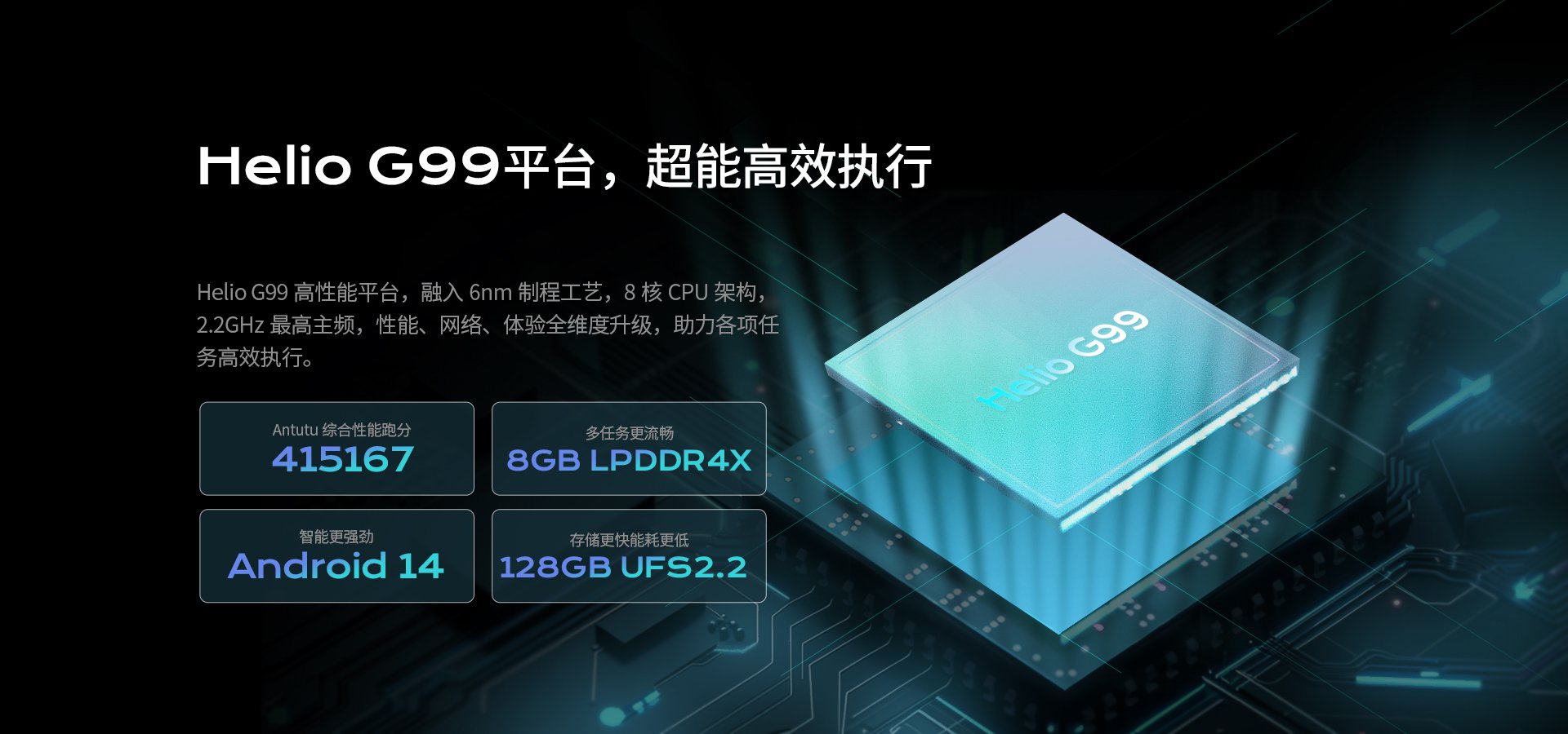 Helio G99平台结合最新Android 14系统,提供高性能游戏体验,性能、网络、体验全维度升级