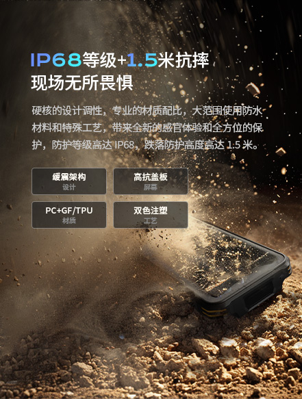 具备IP68等级防水抗摔能力,采用大范围防水材料,深水浸泡长期无损,支持1.5米高度跌落防护