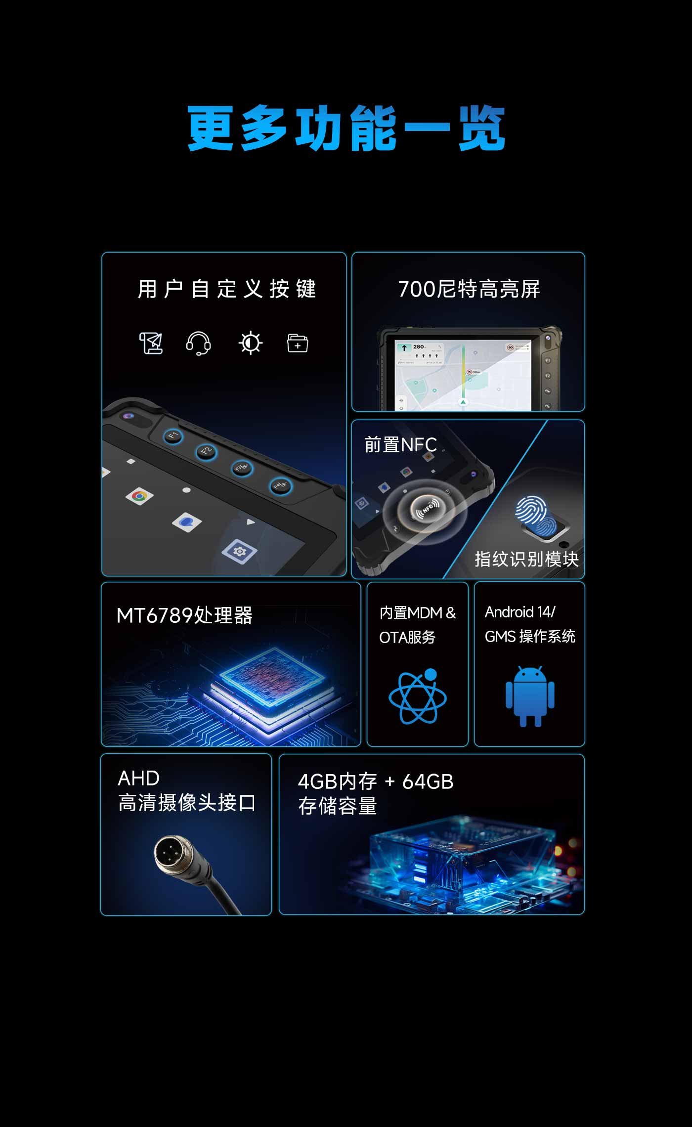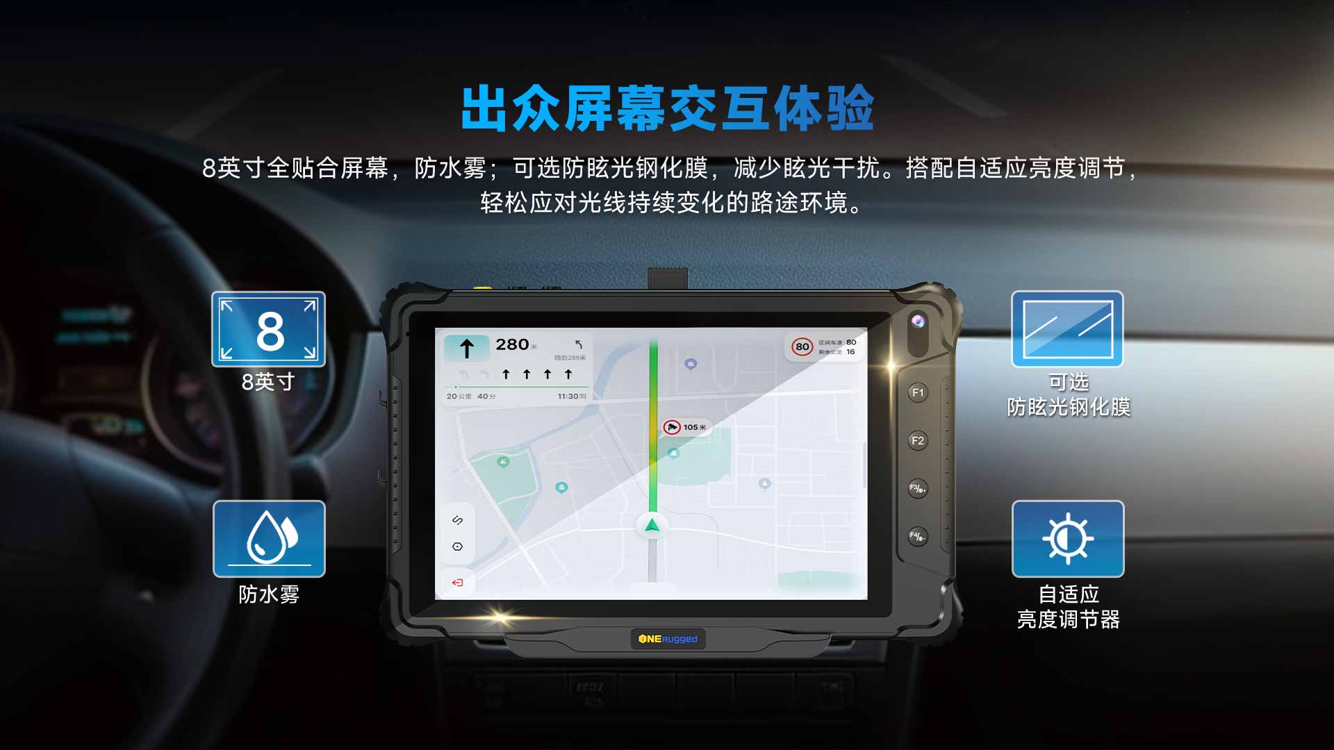 8英寸全贴合700尼特高亮屏,强光下清晰可视,配合多点触控与防水设计,户外操作流畅精准