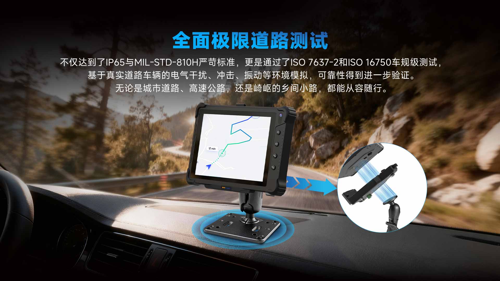 通过IP65防尘防水、MIL-STD-810H军规抗振及车载电力标准测试