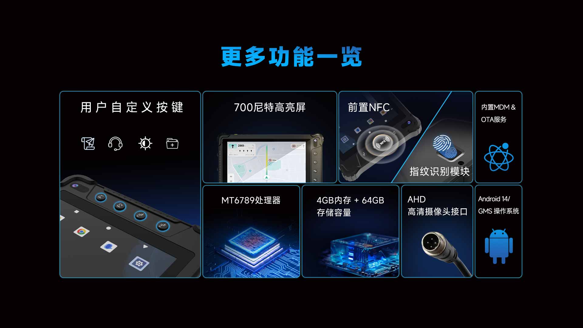 亿道三防V82T是一款专为车队管理打造的车载平板/车载电脑,集智能拍摄、安全防护与高效连接于一体。